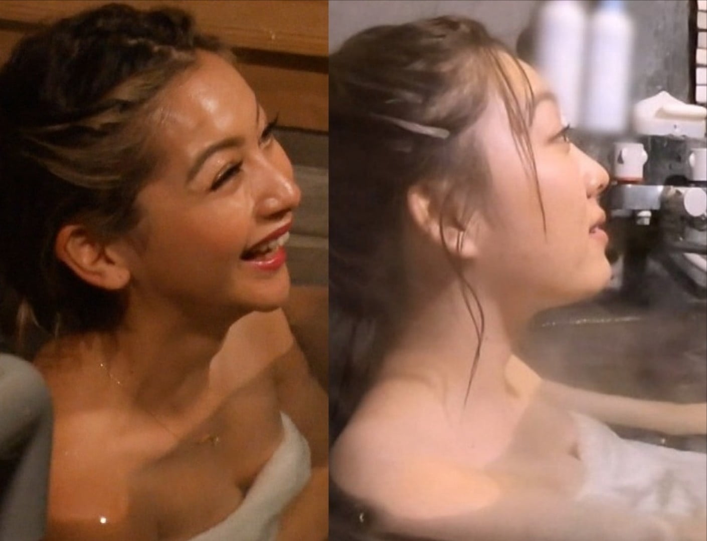 ゆきぽよと須田亜香里の半乳温泉入浴