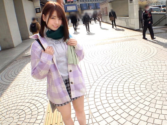 新宿駅近くでミニスカ生脚の20歳清楚JDをナンパ。超敏感乳首に意外なパイパンマ●コ